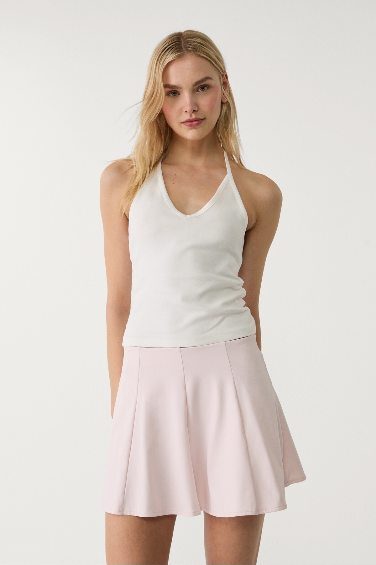 یقه V، یقه هالتر، یقه هالتر، تاپ نصب شده.