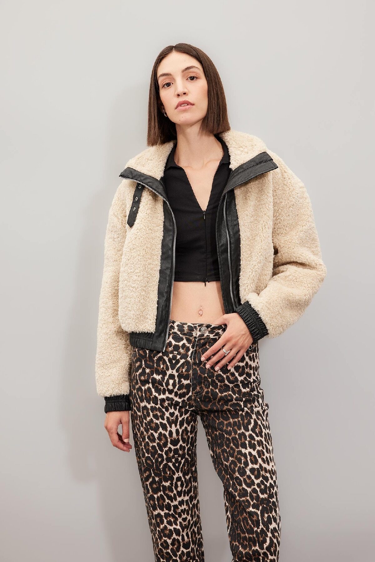 خز مصنوعی یقه ای با تناسب معمولی، ساخته شده از خز مصنوعی با بافت نرم، ظرافت شما را تکمیل می کند.